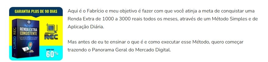 “O segredo do sucesso no marketing de afiliados não está em tentar tudo ao mesmo tempo, mas em escolher uma estratégia comprovada e executá-la com consistência até obter resultados.” – Fabrício, criador do curso Renda Extra Consistente